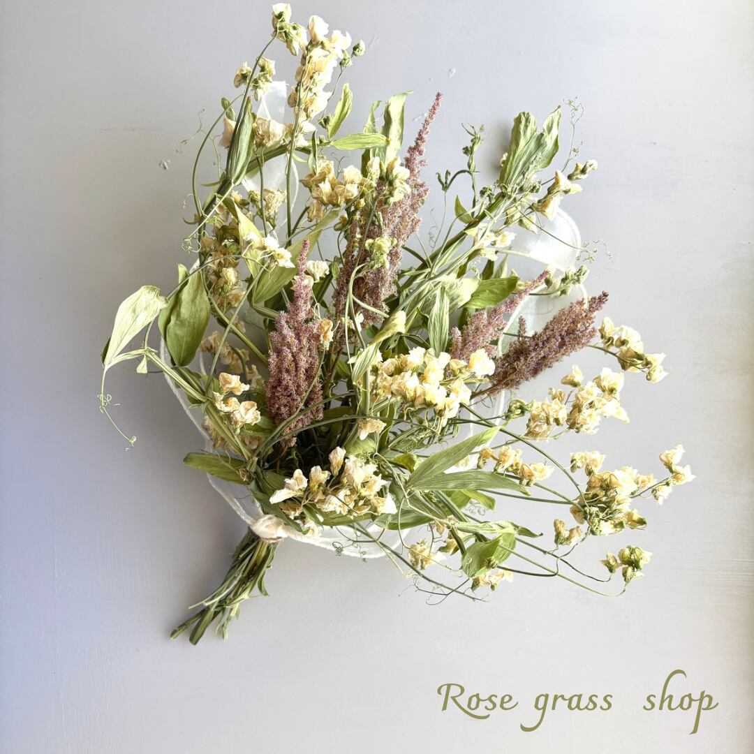 *ドライフラワーですので時とともに褪色して行きますがアンティークな風合いもお楽しみいただけます