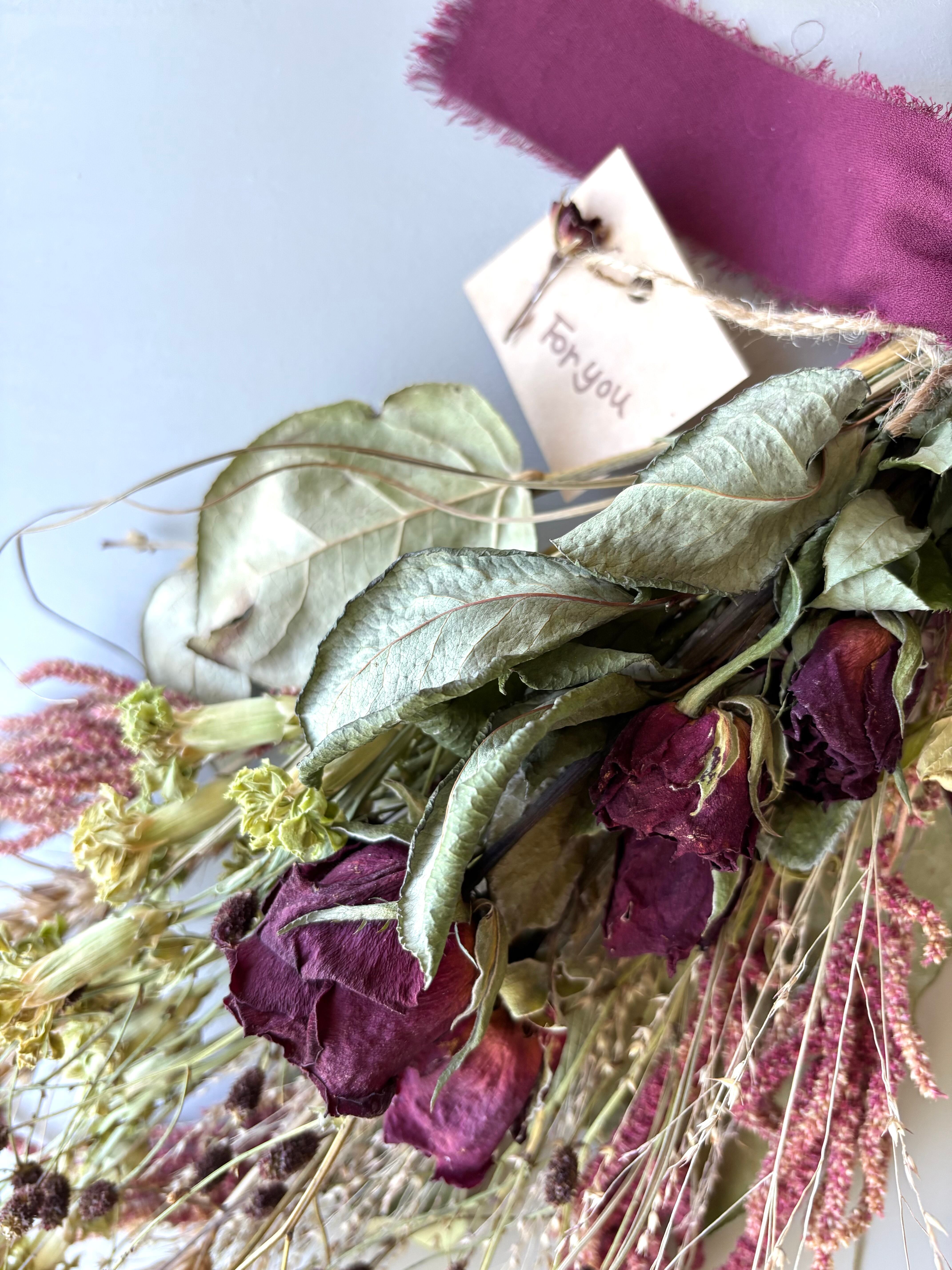 *ドライフラワーですので時とともに褪色して行きますがアンティークな風合いもお楽しみいただけます