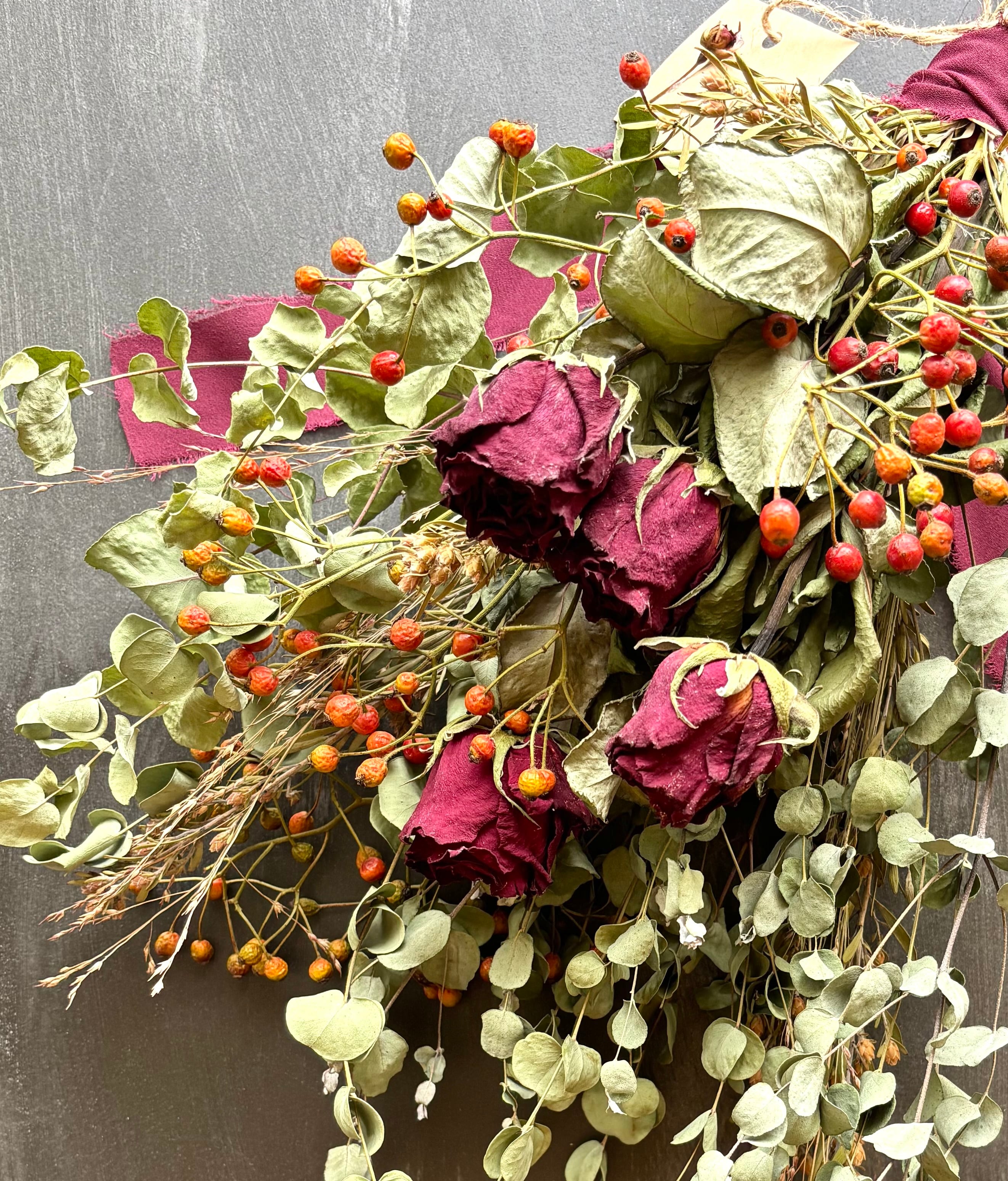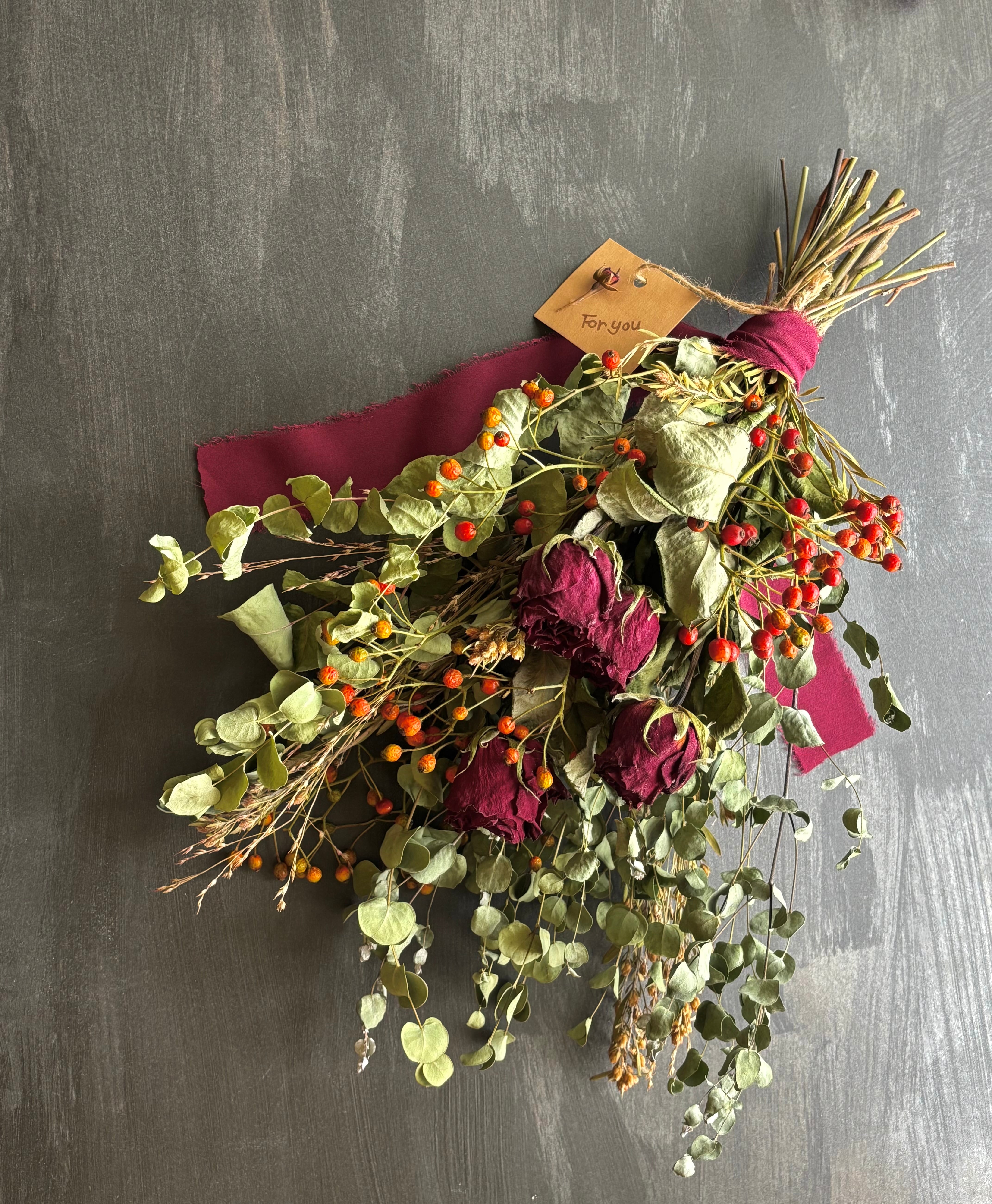 *ドライフラワーですので時とともに褪色して行きますがアンティークな風合いもお楽しみいただけます