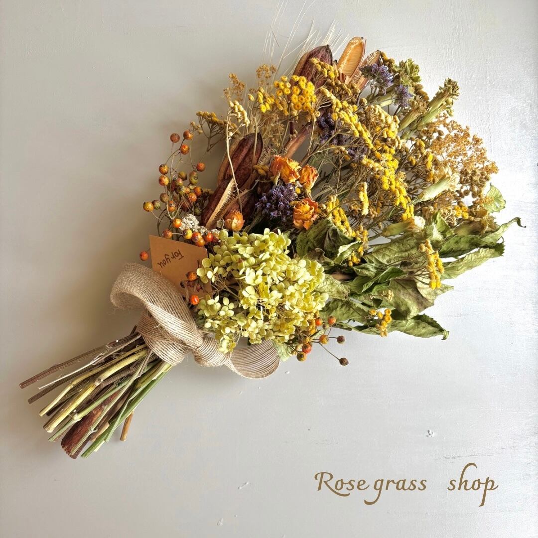 *ドライフラワーですので時とともに褪色して行きますがアンティークな風合いもお楽しみいただけます