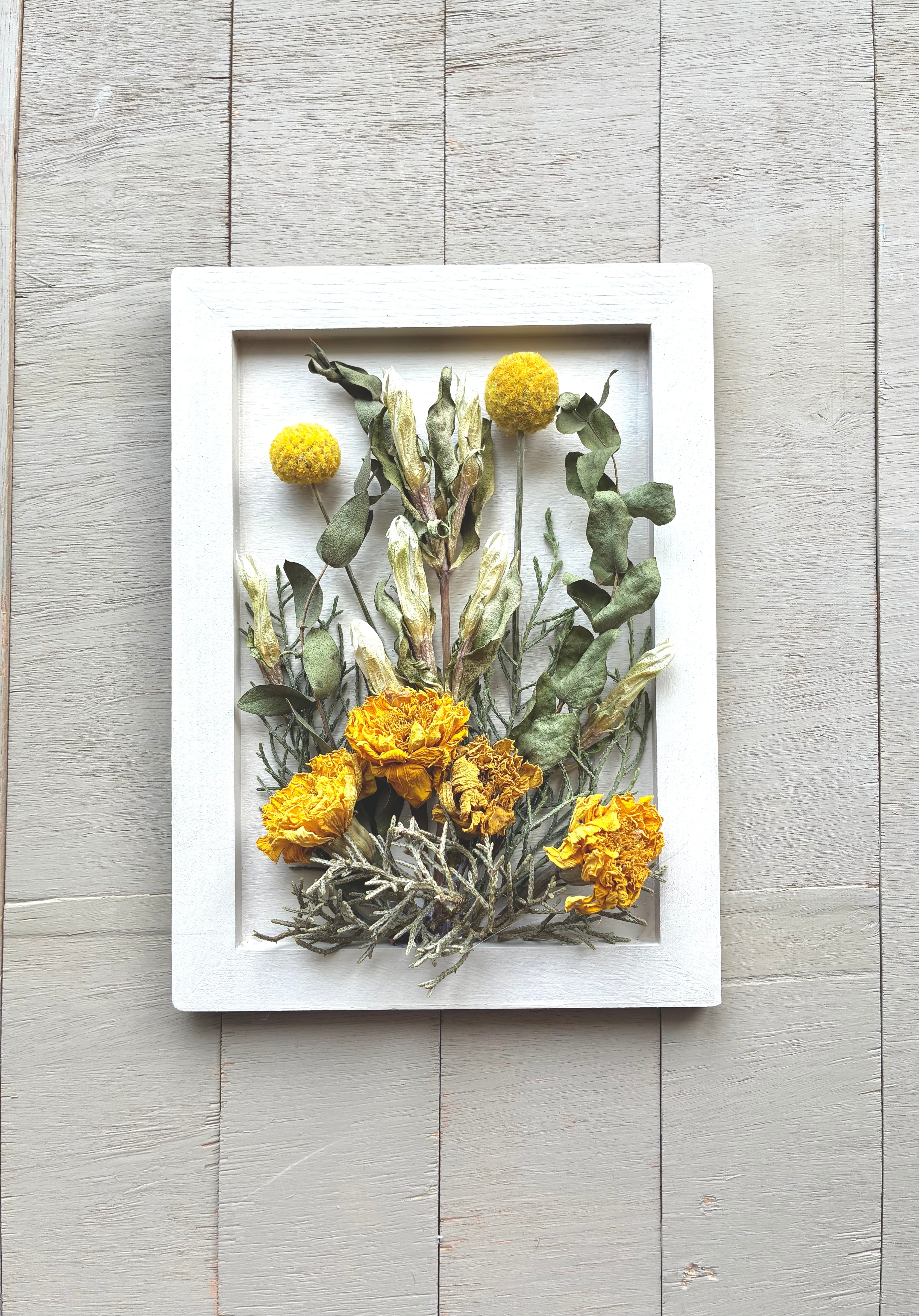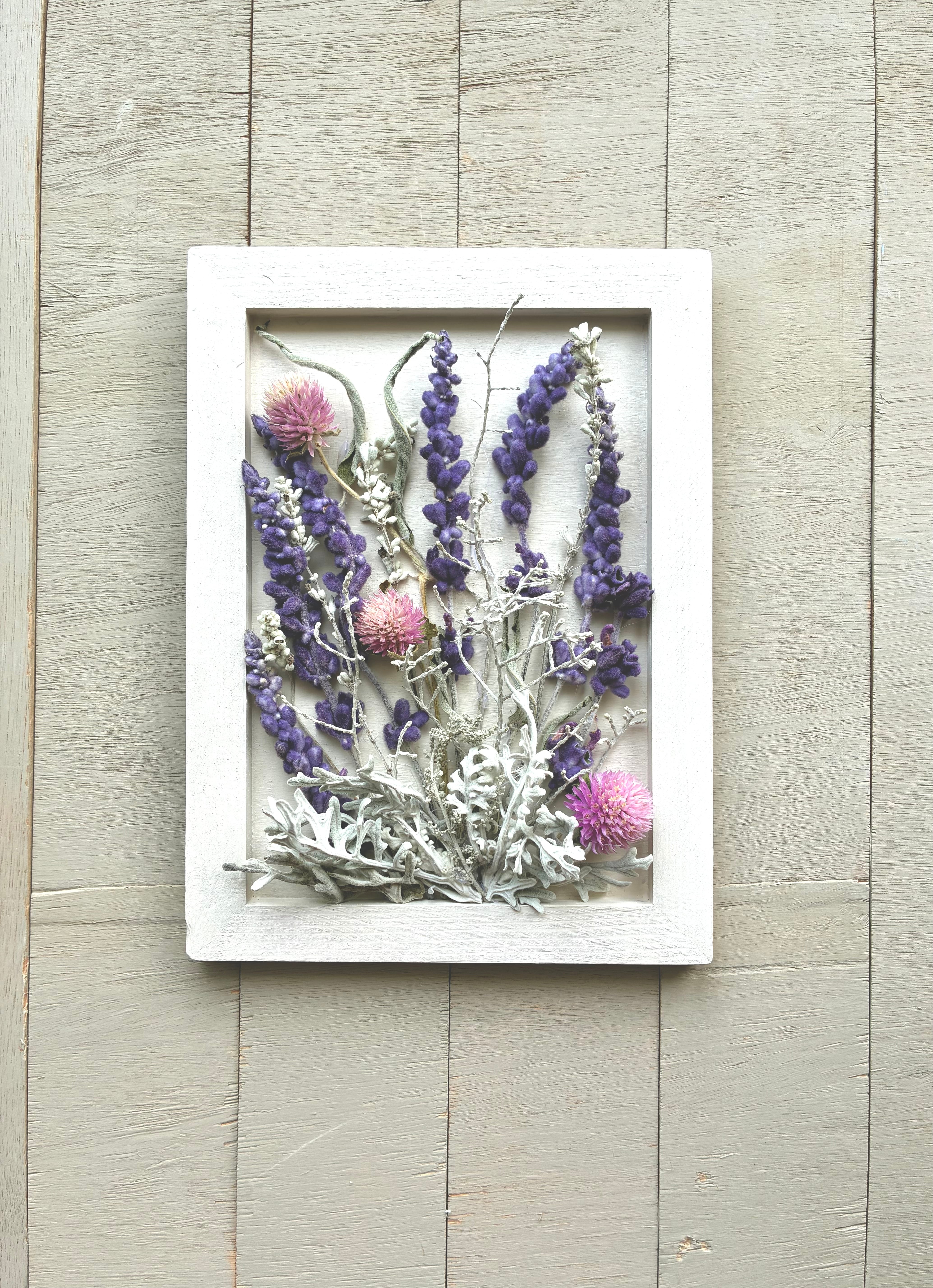 北海道で自家栽培したドライフラワーを使用した、一点もののボタニカルフレームアートです。
