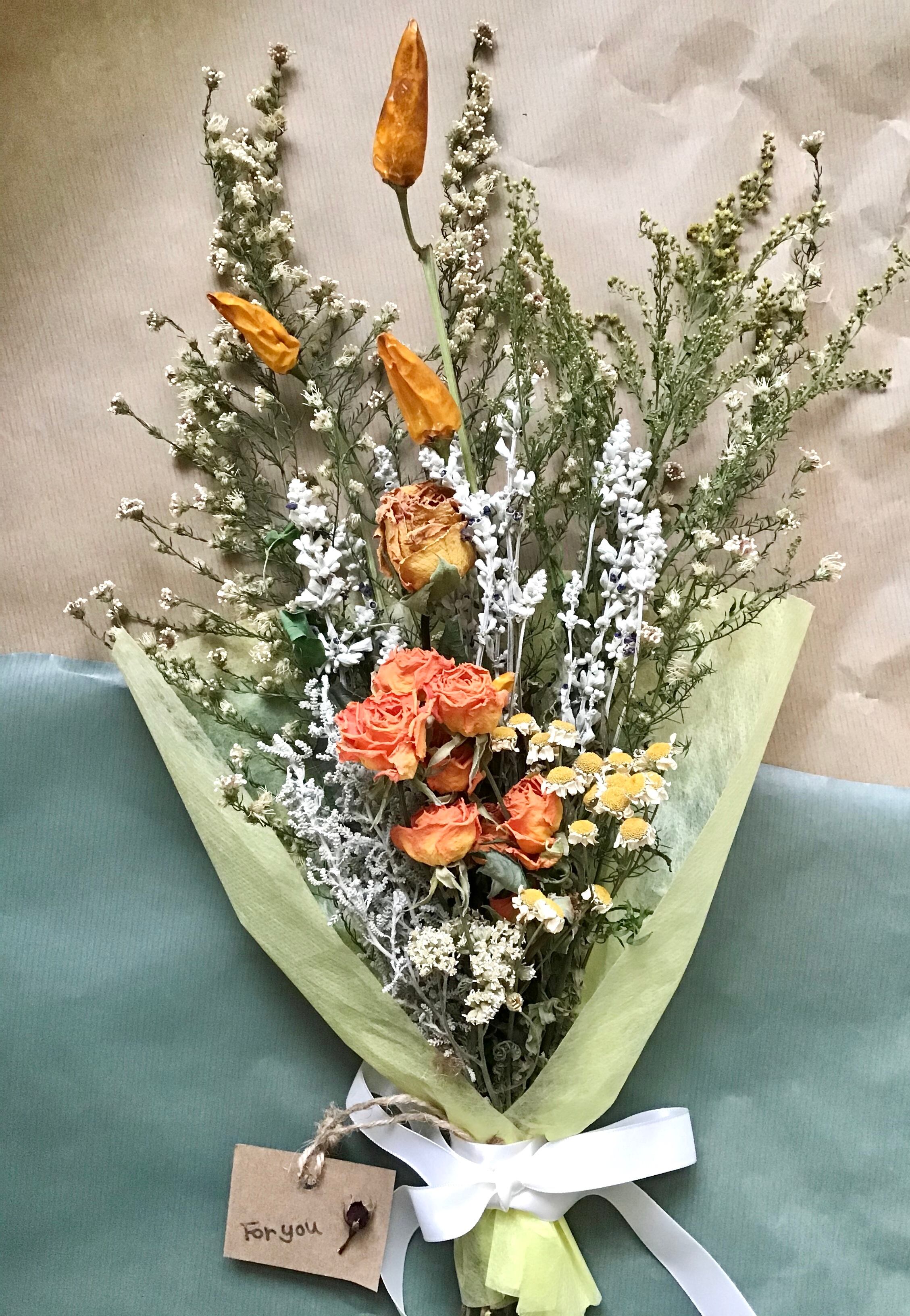 ドライフラワーですので時とともに退色していきますがアンティークな風合いもお楽しみいただけます