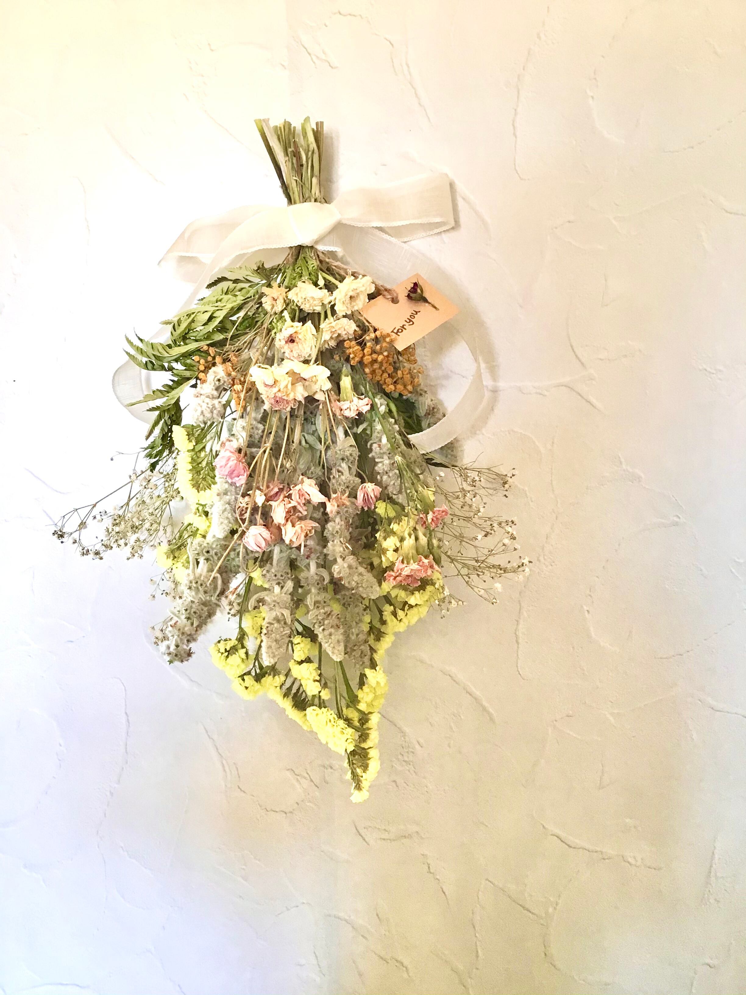 ドライフラワーですので時とともに退色していきますがアンティークな風合いもお楽しみいただけます