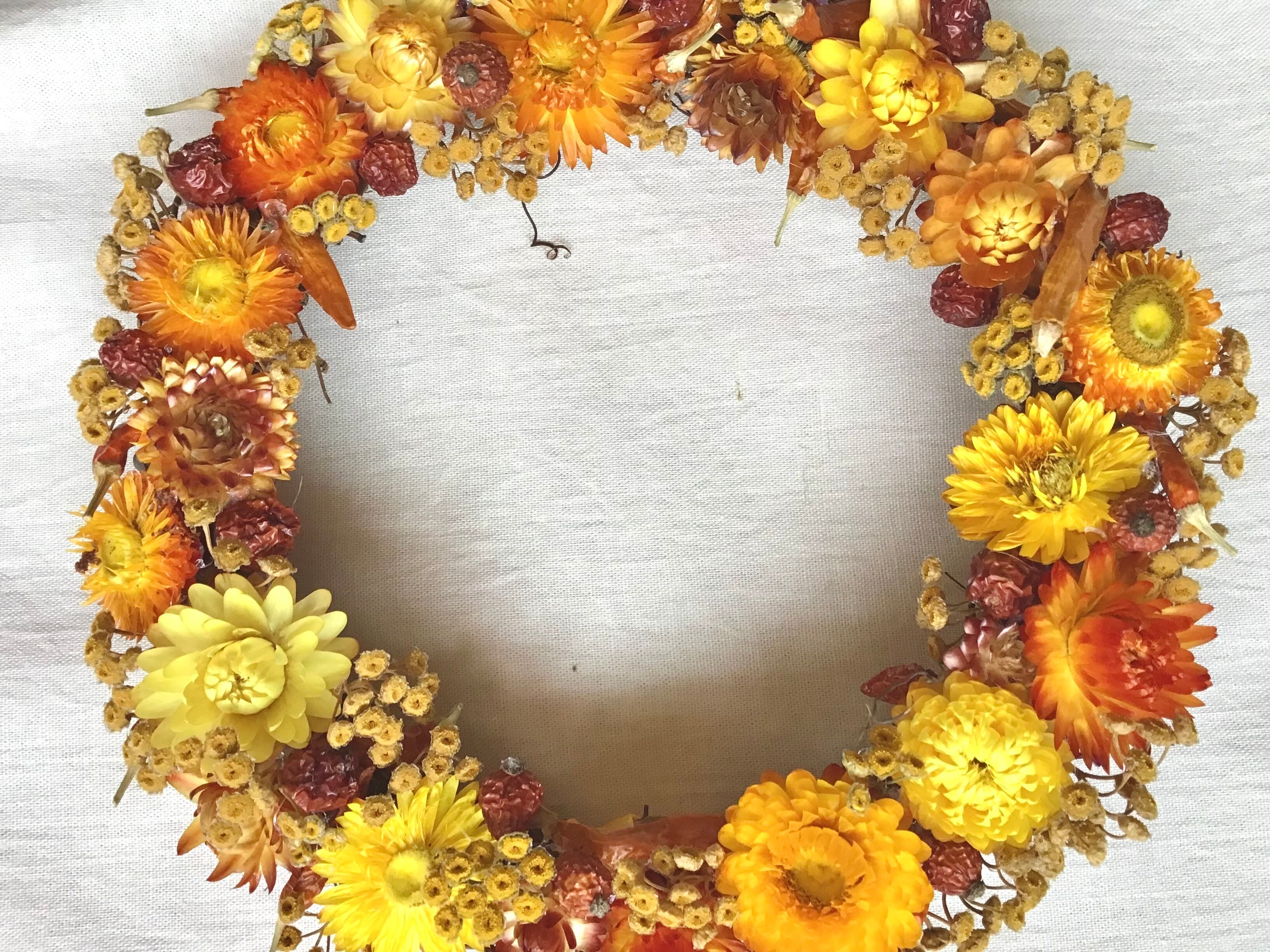 ドライフラワーですので時とともに退色していきますがアンティークな風合いもお楽しみいただけます