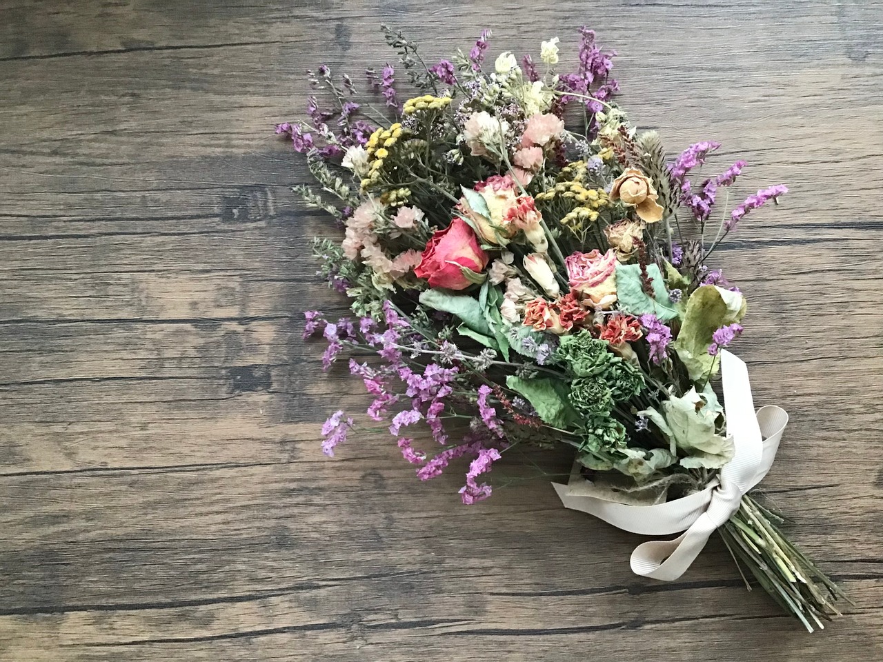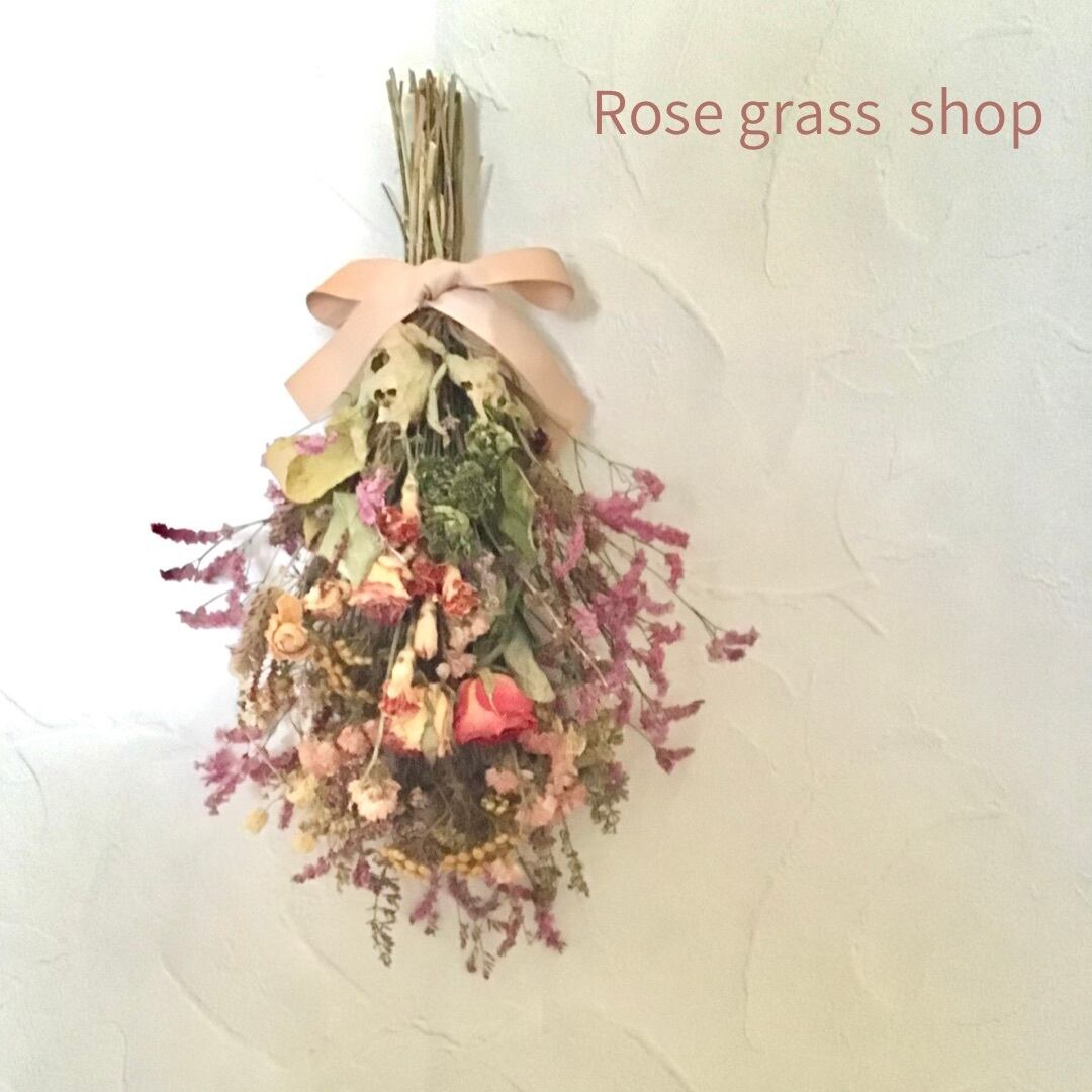 ドライフラワーですので時とともに退色していきますがアンティークな風合いもお楽しみいただけます
