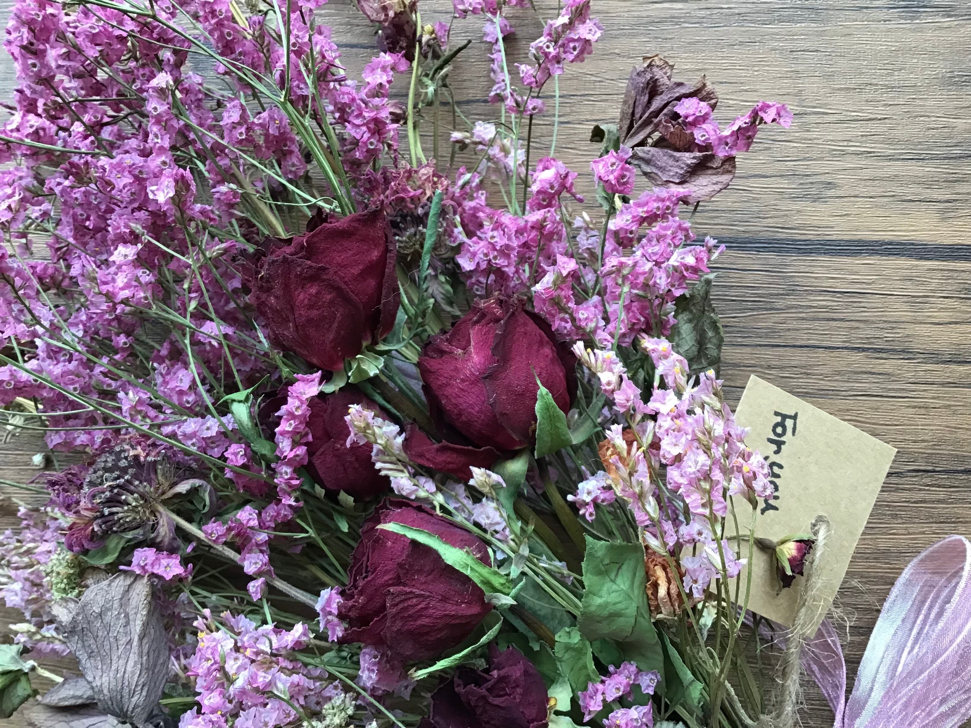 ドライフラワーですので時とともに退色していきますがアンティークな風合いもお楽しみいただけます