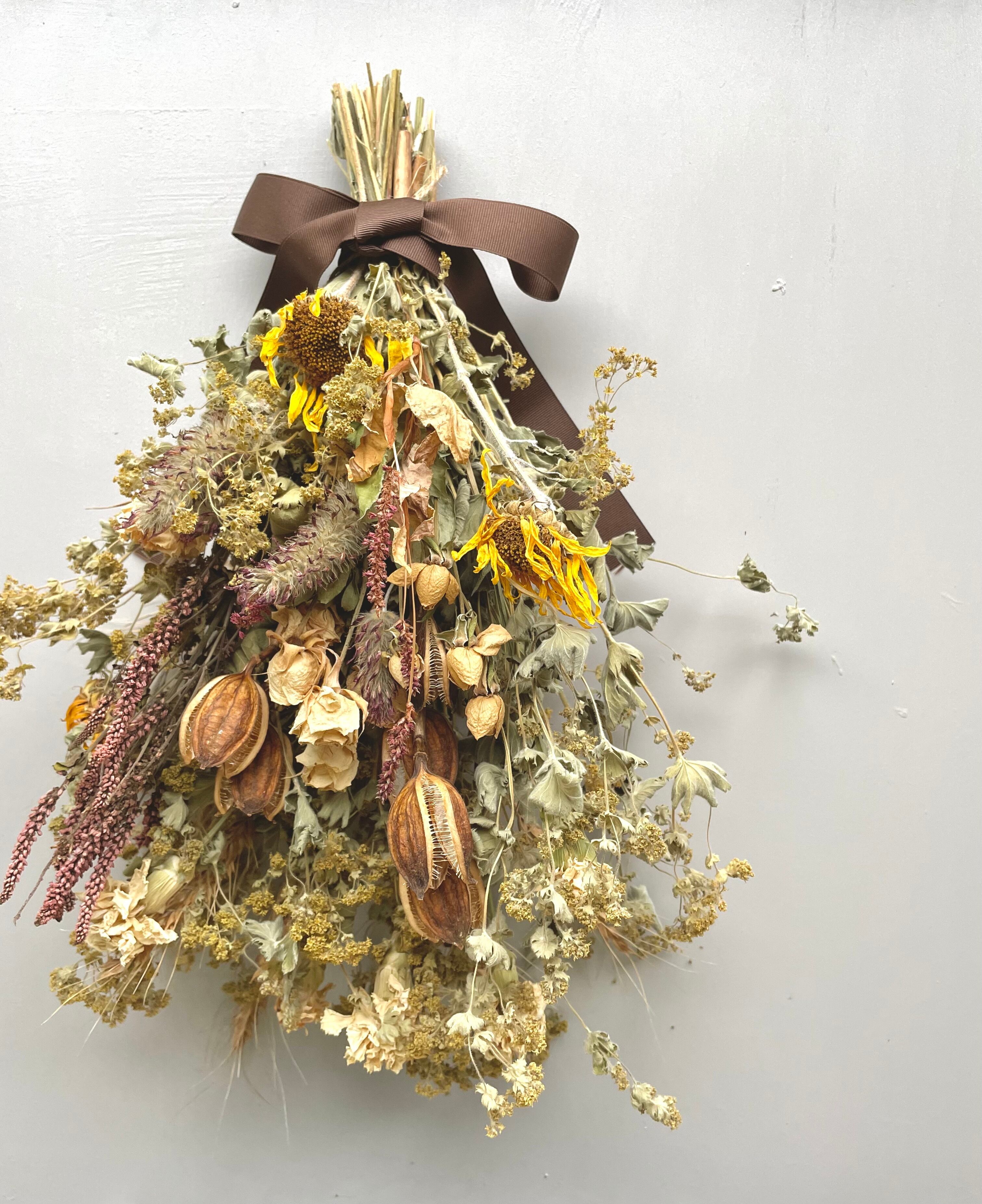 ボリュームのあるドライフラワーの花束です
